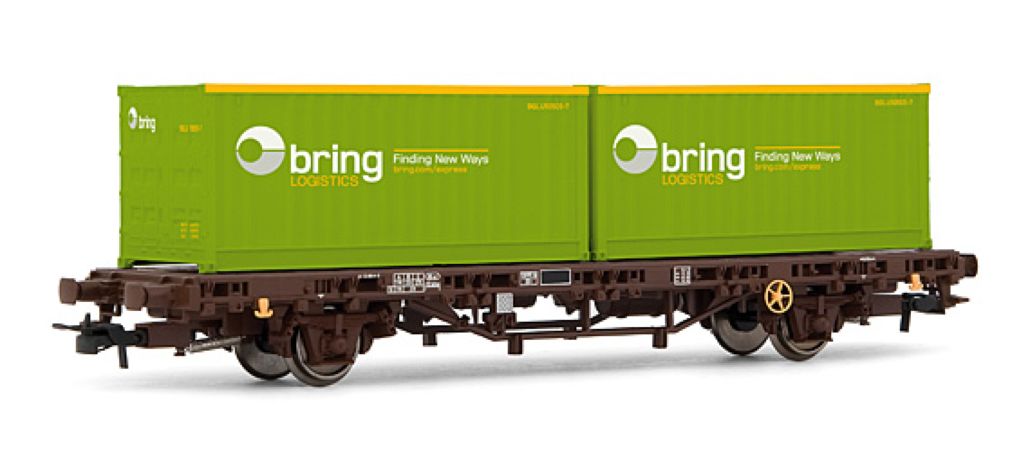 Wagon à bord bas NSB avec 2 containers "Bring"