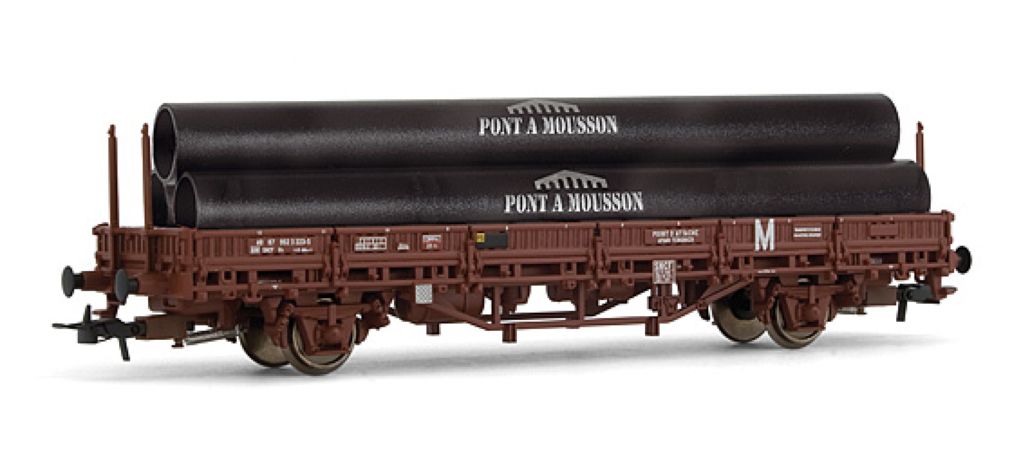 Wagon à bords bas, SNCF, type Ks, chargé de tubes