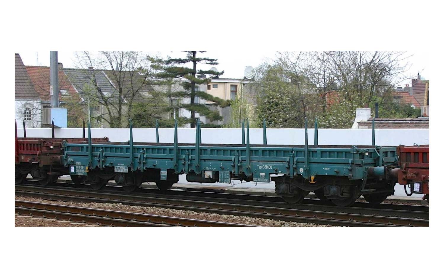 Wagon à bords plats REMMS livrée Turquoise avec plaques d'acier SNCB