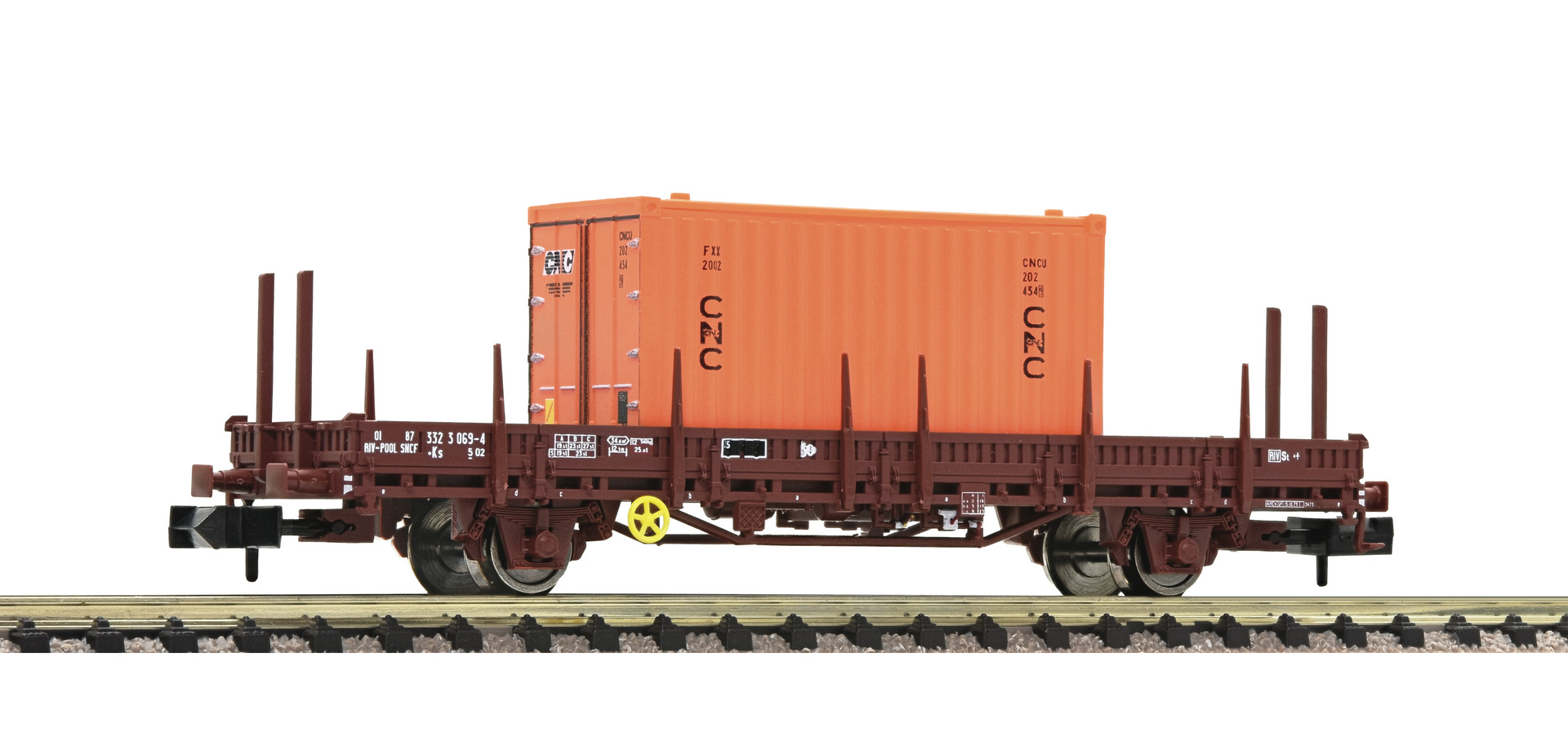Wagon à ranchers pivotants SNCF, Type Us, avec 1 conteneur 20'