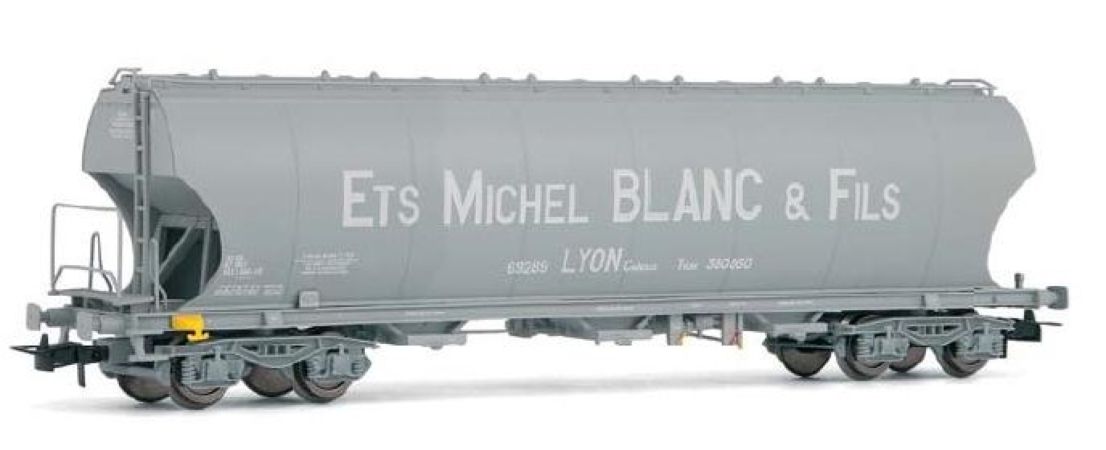 Modèle réduit de la marque JOUEF d'un wagon céréalier à parois latérales bombées Michel Blanc.