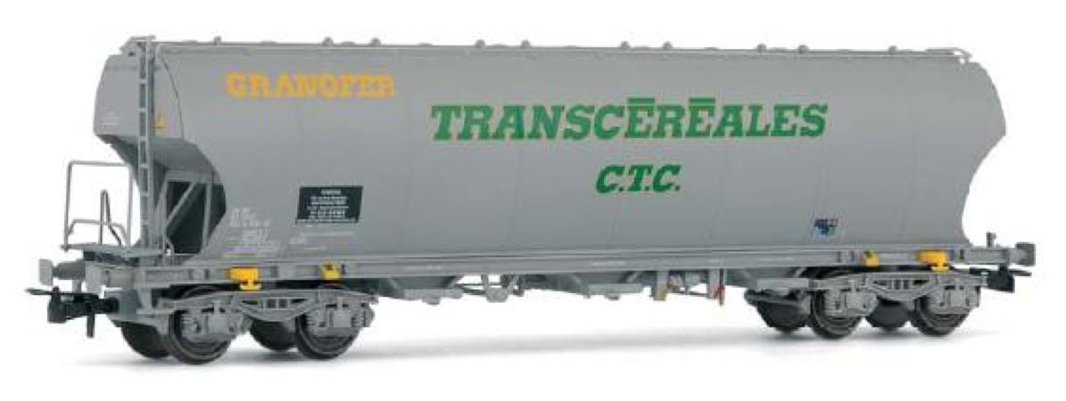 Modèle réduit de la marque JOUEF d'un wagon céréalier à parois latérales bombées "Transcéréales CTC".