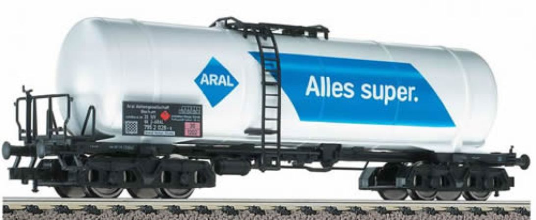 Modèle réduit FLEISCHMANN d'un wagon-citerne "ARAL" avec plate-forme serre freins.