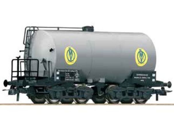 Modèle réduit Roco représentant un wagon citerne OMV des chemins de fer autrichiens.