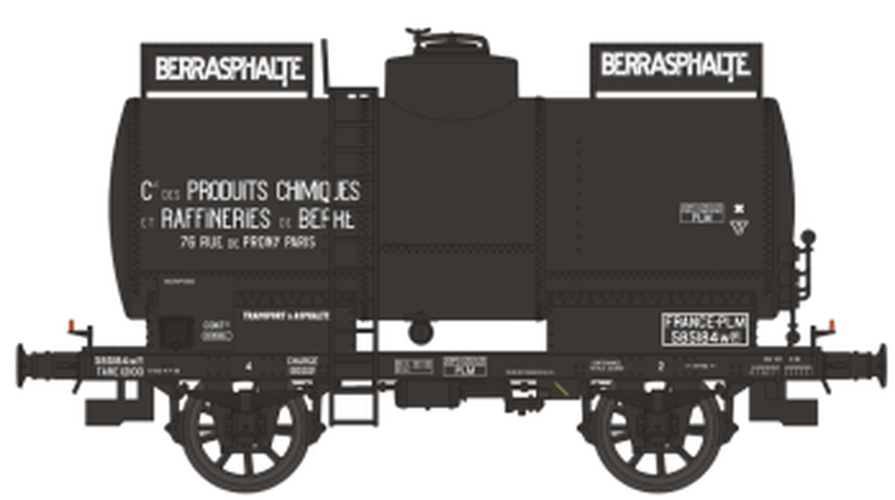 Wagon citerne rivetée, boites d’essieux à coussinets, avec réchauffeur ‘BERRASPHALTE’ N°585184 Ep.II PLM