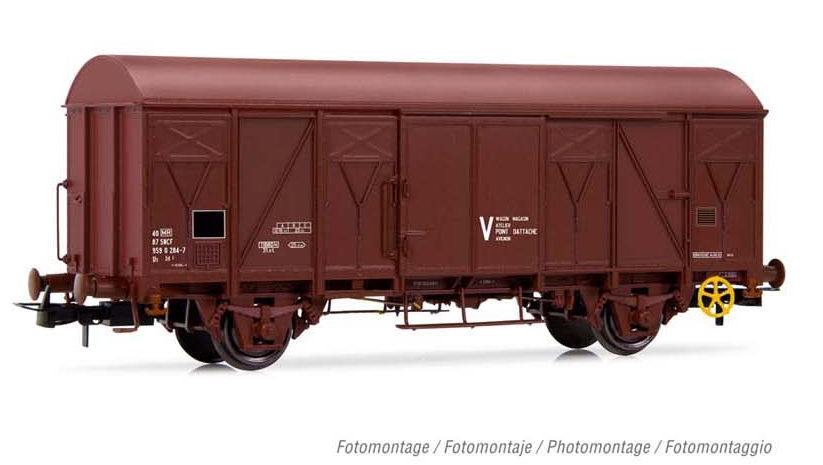 Wagon couvert à 2 essieux Us, SNCF livrée rouille rouge "V"