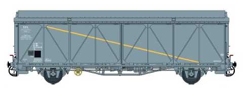 Wagon couvert EVS Hs gris bande jaune, parois renforcées, toit haut