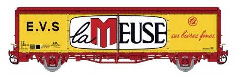 Wagon couvert EVS Hs jaune, parois planes, la MEUSE