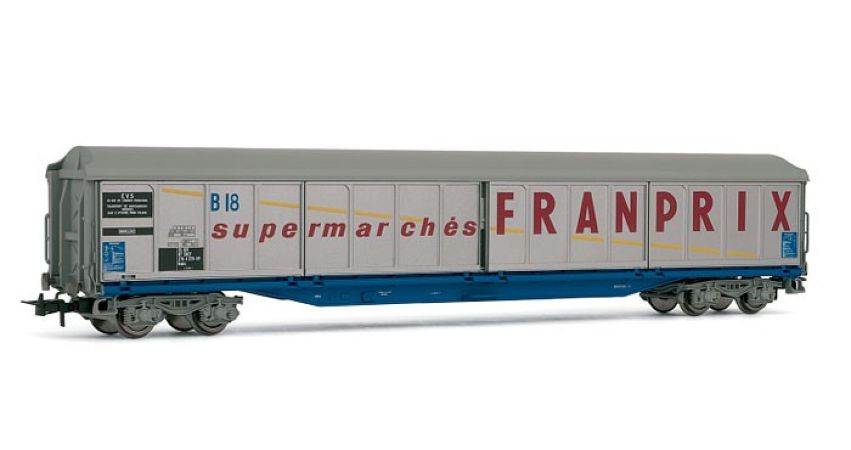 Vous êtes ici : Accueil > Materiel roulant > Wagons marchandises > Wagon couvert "Franprix", avec parois coulissantes