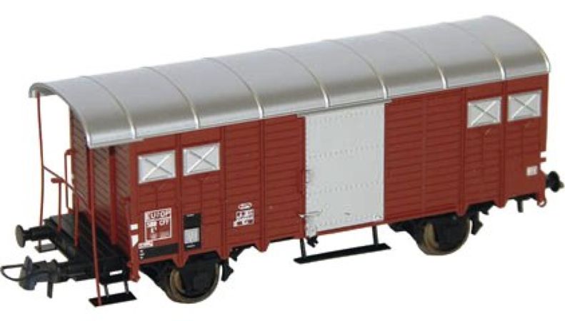 Modèle réduit Roco représentant un wagon de marchandises couverts des Chemins de fer fédéraux suisses. Epoque IV.