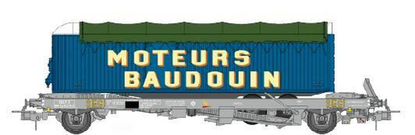 Wagon KANGOUROU Ep.III avec remorque "MOTEURS BAUDOIN" bâche double essieux