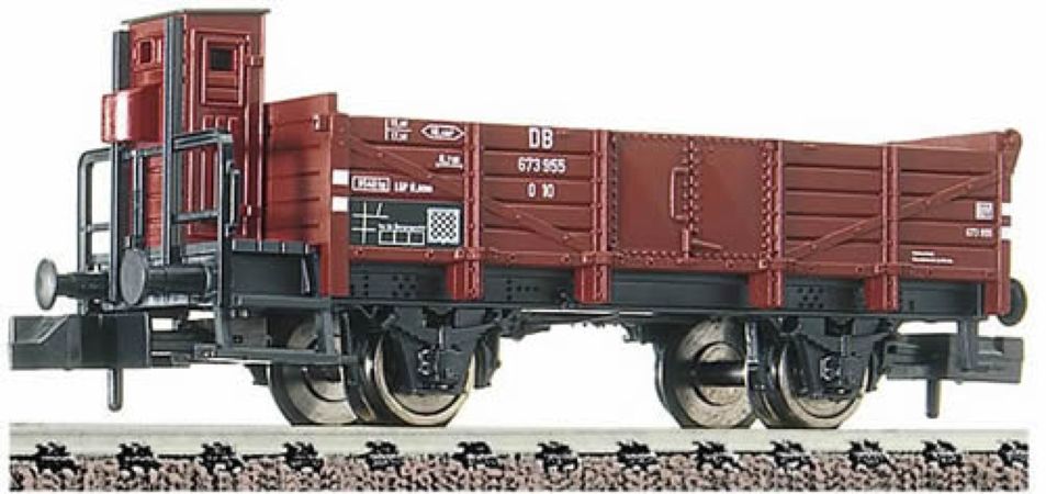 Modèle réduit FLEISCHMANN d'un wagon ouvert, avec cabine de serre freins, type O 10 de la DB