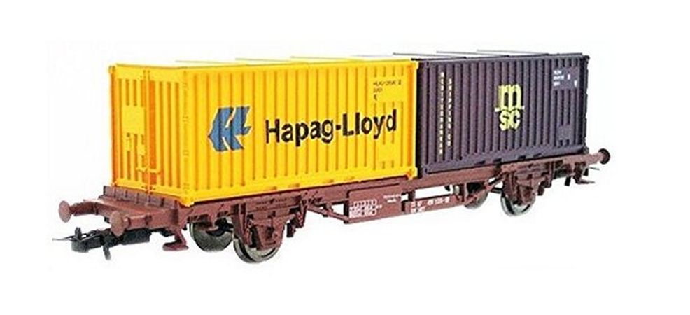 Wagon plat à essieux avec chargement de 2 conteneurs, SNCF