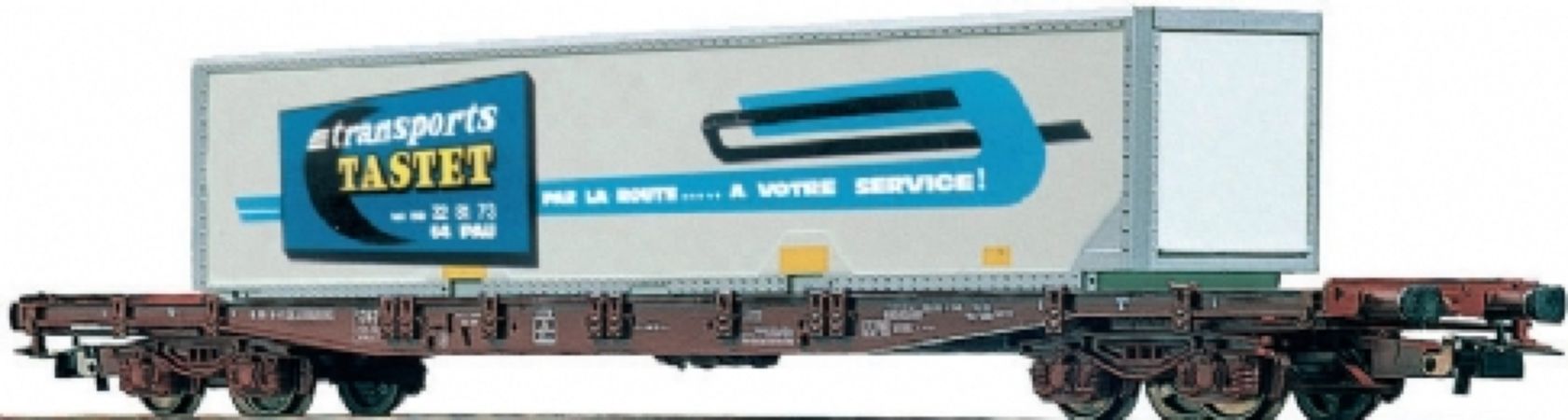 Wagon plat de la SNCF avec caisse mobile Tastet.
