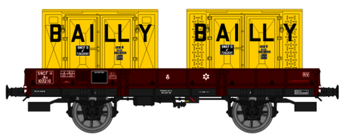 Wagon freiné, boites d’essieux à coussinets, roues à rayons N° JHO 103210 avec 2 cadres BAILLY jaunes