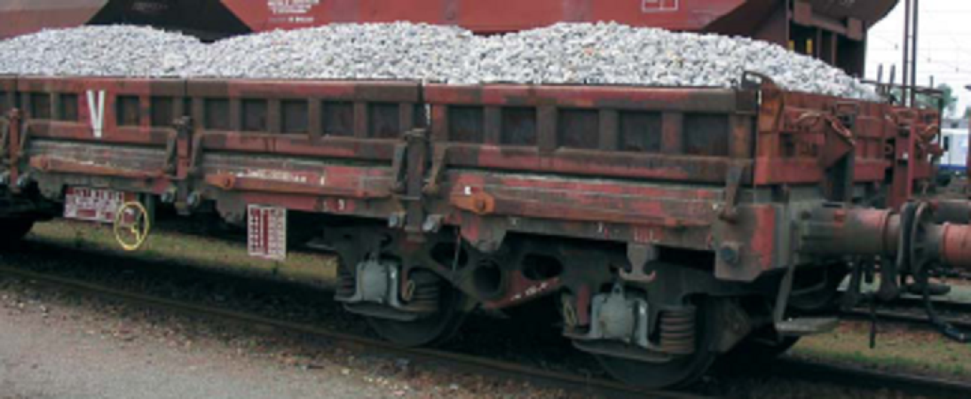 Wagon plat Remms SNCF, chargé de ballast