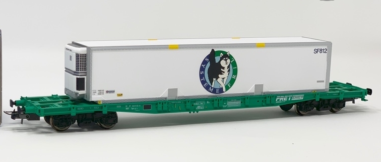 Wagon plat Sgss 63-6, SNCF avec caisse mobile "Système Fril"