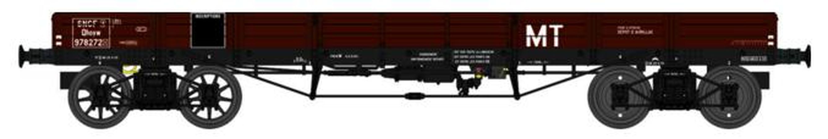Modèle réduit REE représentant un wagon PLAT TP à 6 ridelles Ep.III SNCF MT présentant les caractéristiques suivantes :