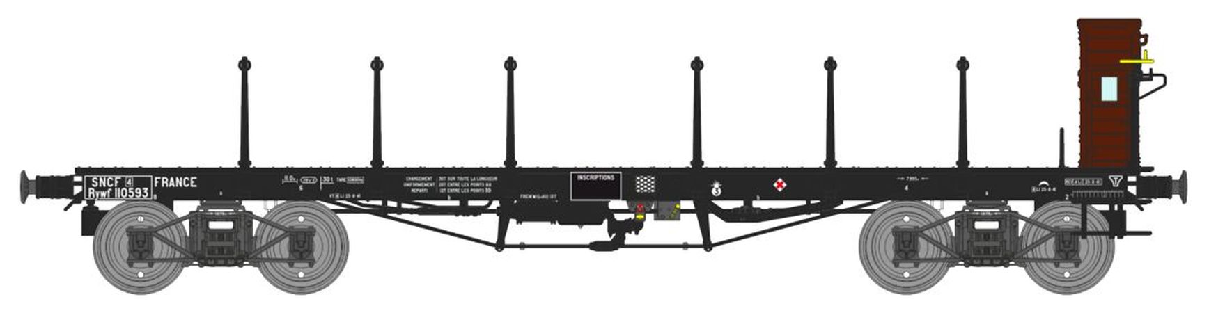 Wagon PLAT TP ranchers hauts avec Guérite Ep.III A SNCF Rywf 10593