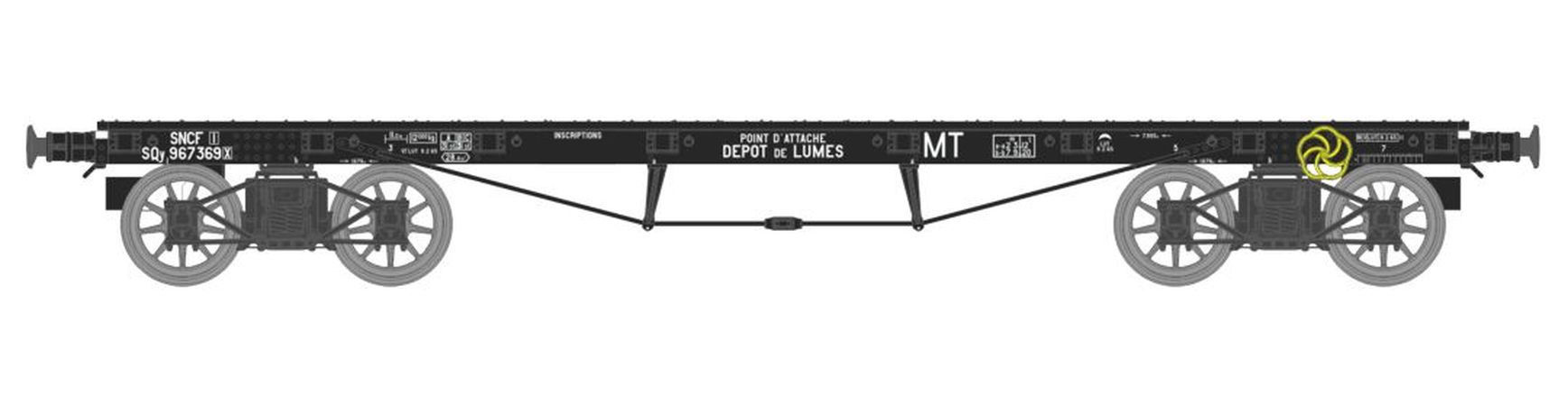 Wagon PLAT TP sans freins, 4 roues à rayons Ep.III B SNCF MT SQy 967369