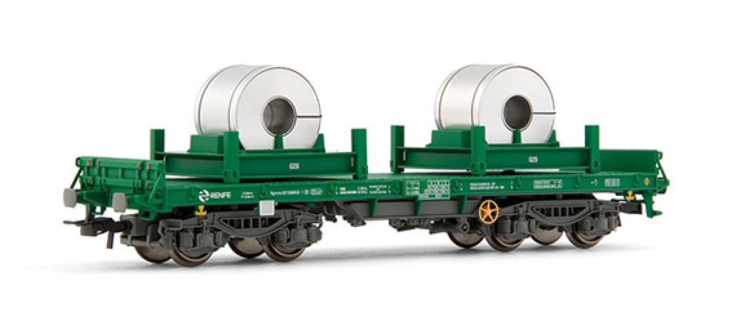 Wagon plat, type Rmms, avec fuseaux