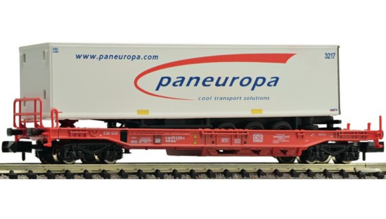 Wagon-poche unifié, de la Société des chemins de fer allemands avec un semi-remorque frigorifique Pan-Europa, époque V - VI.