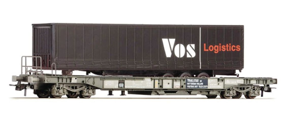 Modèle réduit Roco représentant un Wagon-poche unifié de la société HUPAC utilisé comme wagon privé par les Chemins de fer fédéraux suisses.