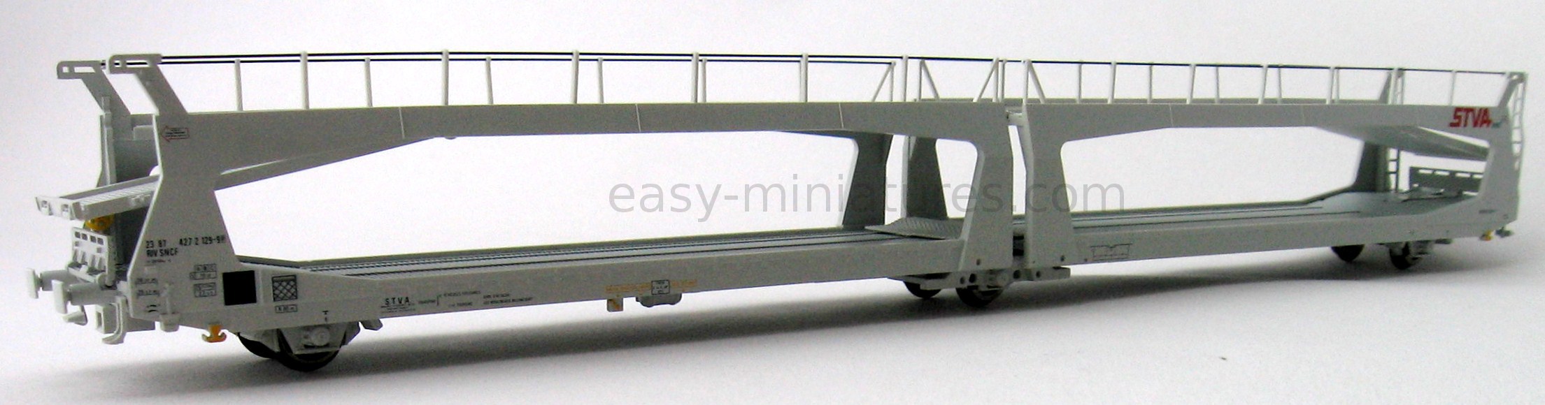 Modèle réduit d'un wagon porte-autos STVA de la SNCF à 3 essieux TA 378, époque IV / V.