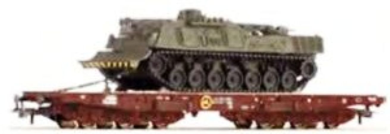 Modèle réduit représentant un wagon porte char des chemins de fer Italien