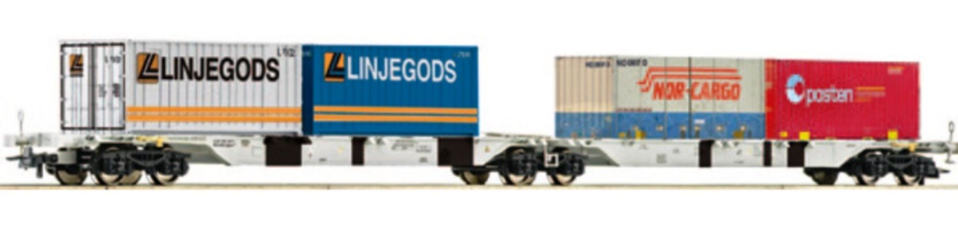 Modèle réduit Roco finement détaillé représentant un Wagon porte container double AAE,