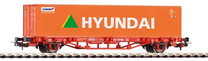 Modèle réduit PIKO d'un wagon porte-container avec un container "HYUNDAI"
