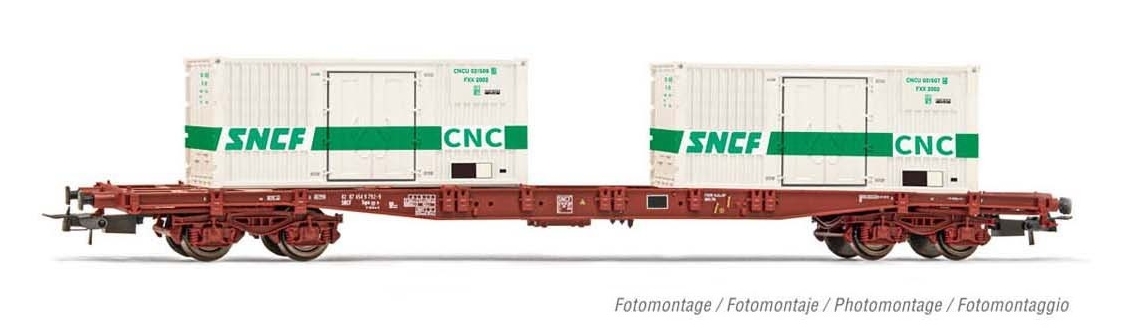 Wagon porte-container S68, SNCF chargé avec 2 containers CNC