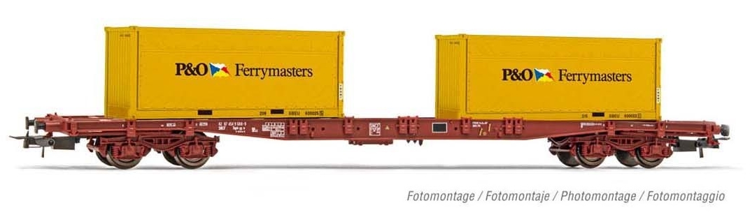 Jouef HJ6194 - Wagon porte-container S68, SNCF chargé avec 2 containers P&O Ferrymasters