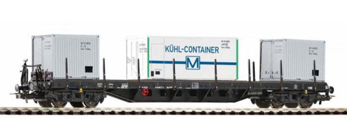 Modèle réduit Piko représentant un wagon porte contairners DR