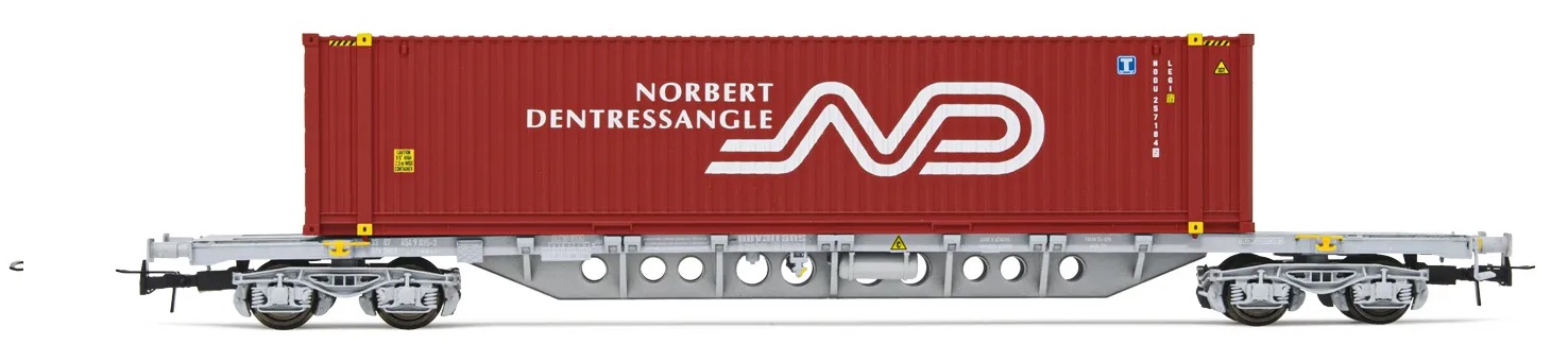Profitez chez Easy-Miniatures de ce superbe wagon porte-conteneurs à 4 essieux Sgss, chargé avec un conteneur de 45' «Norbert Dentressangle», disponible sous la référence JOUEF HJ6241;