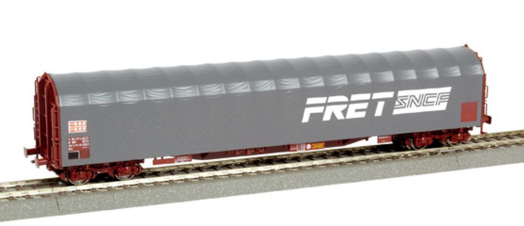 Modèle réduit ROCO d'un wagon de la SNCF avec bache grise FRET, nouvelle immatriculation.