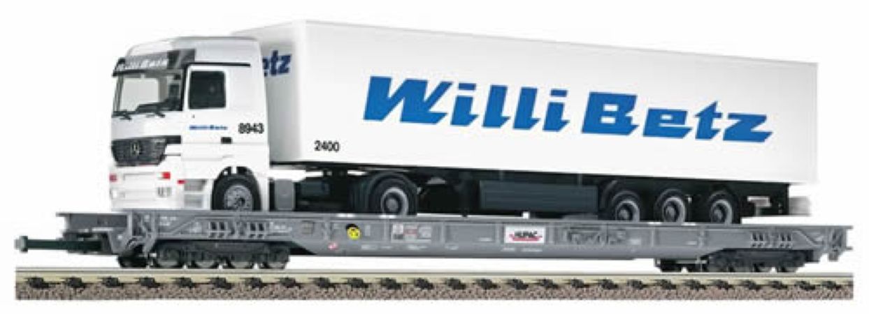 Le wagon transporte un poids lourd Herpa "Willi Betz".