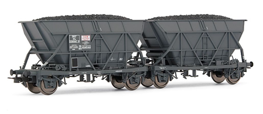 Modèle réduit de la marque Electrotren d'un wagon trémie double de la SNCF, "SGW"