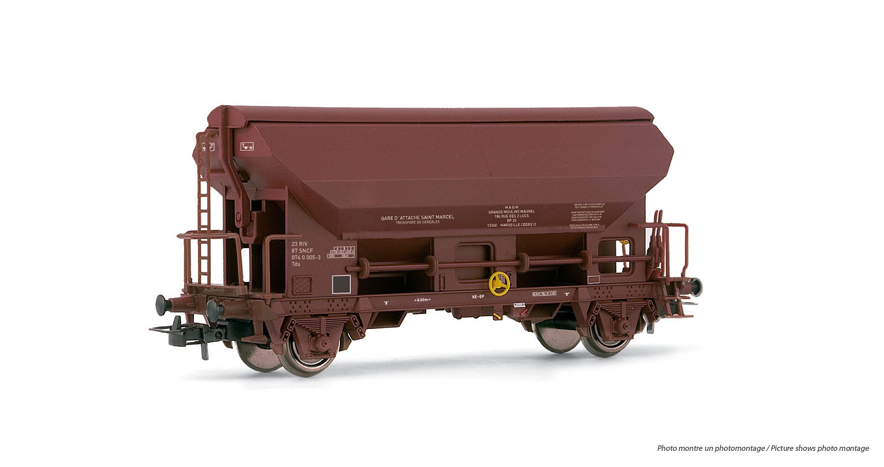 JOUEF HJ 6098 - Wagon trémie type Tds à essieux livrée brun gare d'attache Mulhouse