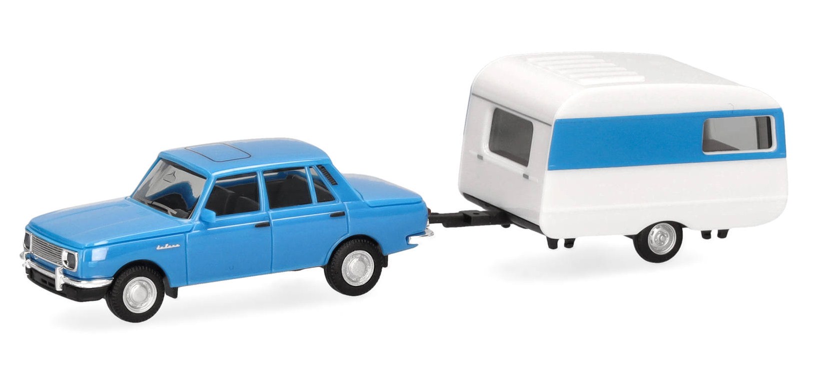 Wartburg 353 '82 berline avec caravane Qek, bleu ciel