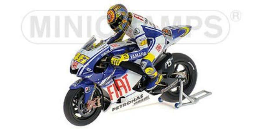 Moto Minichamps représentant la Yamaha YZR-M1 Rossi avec figurinne